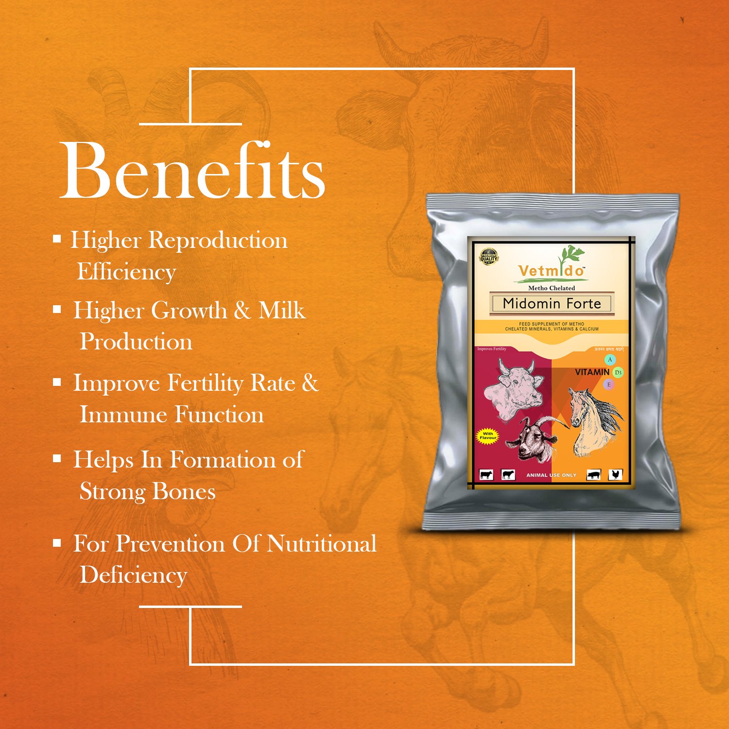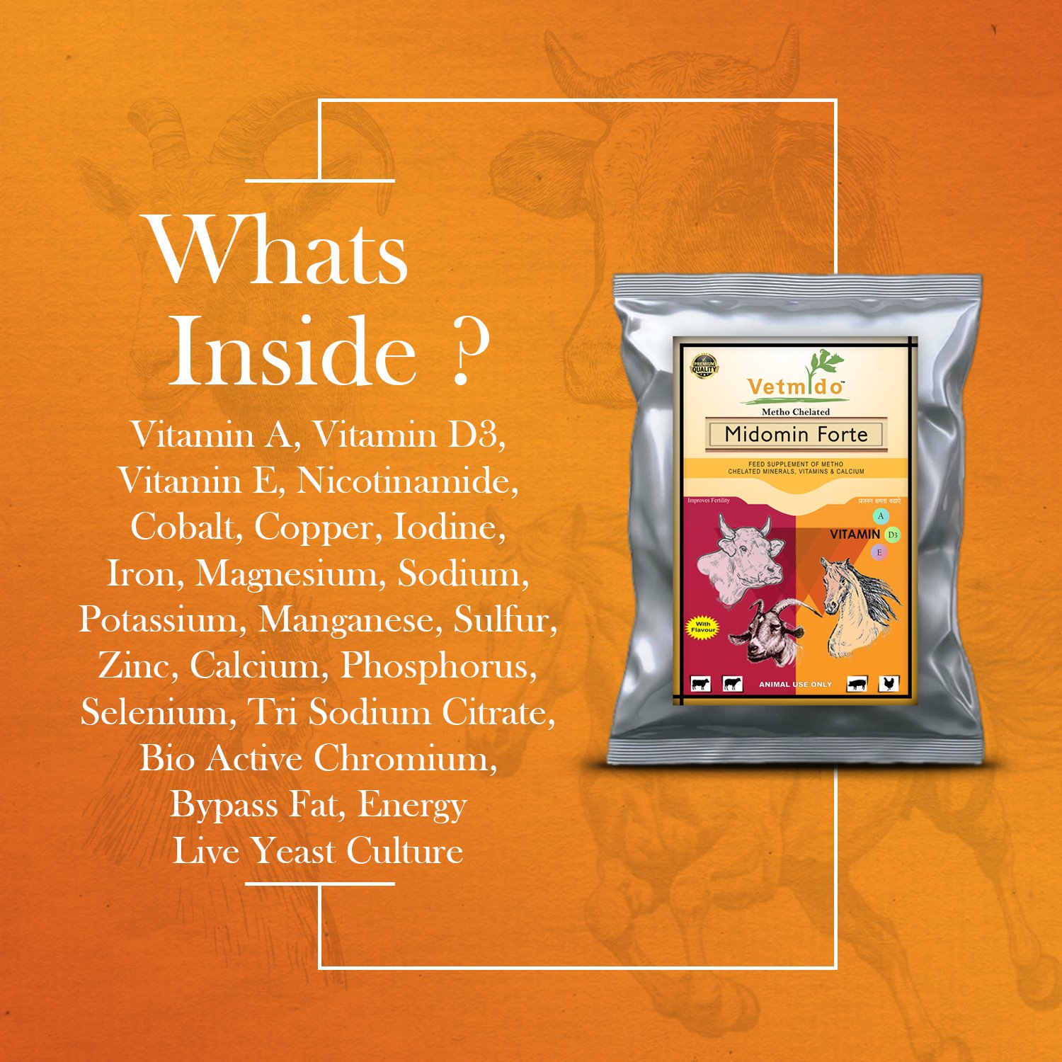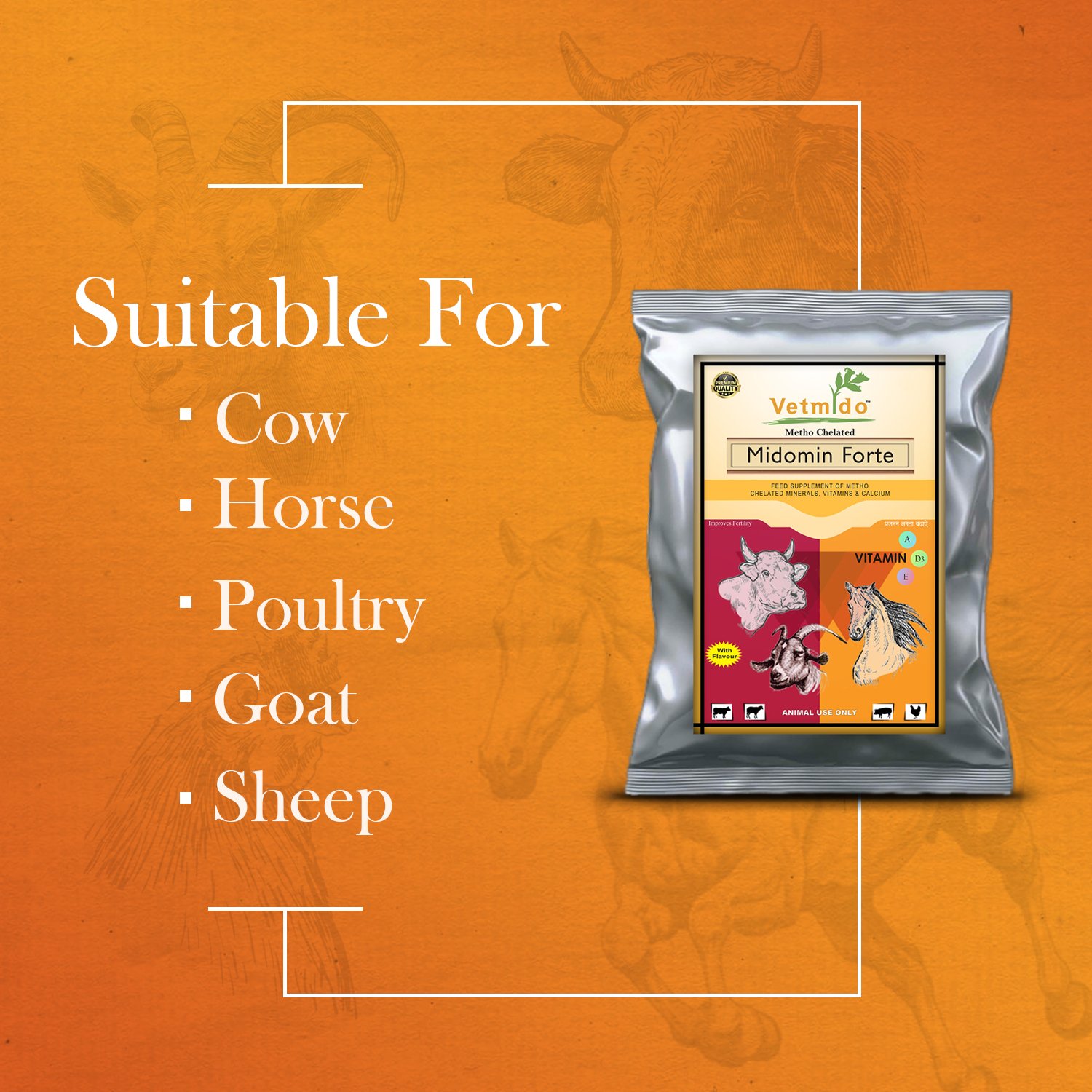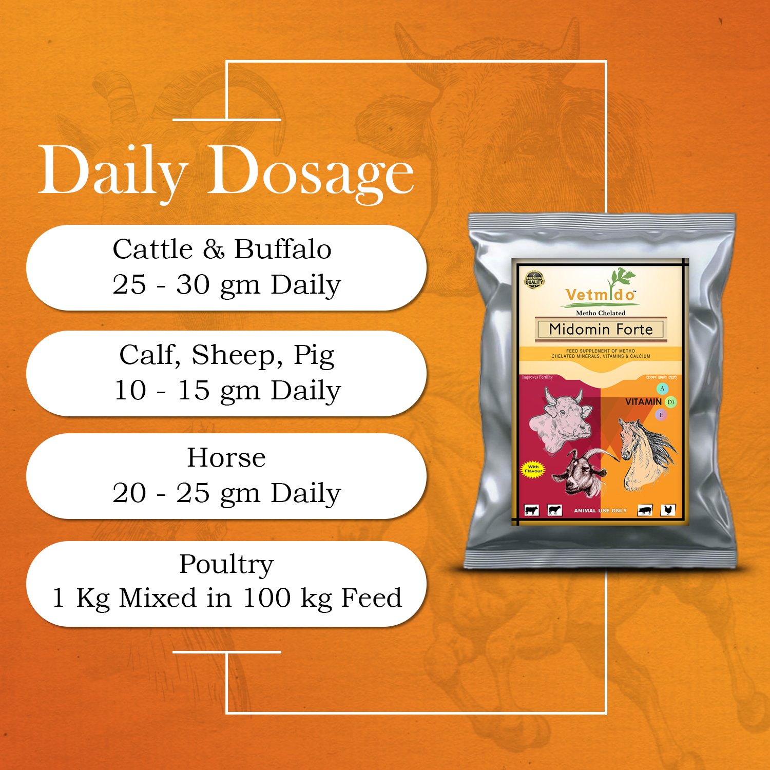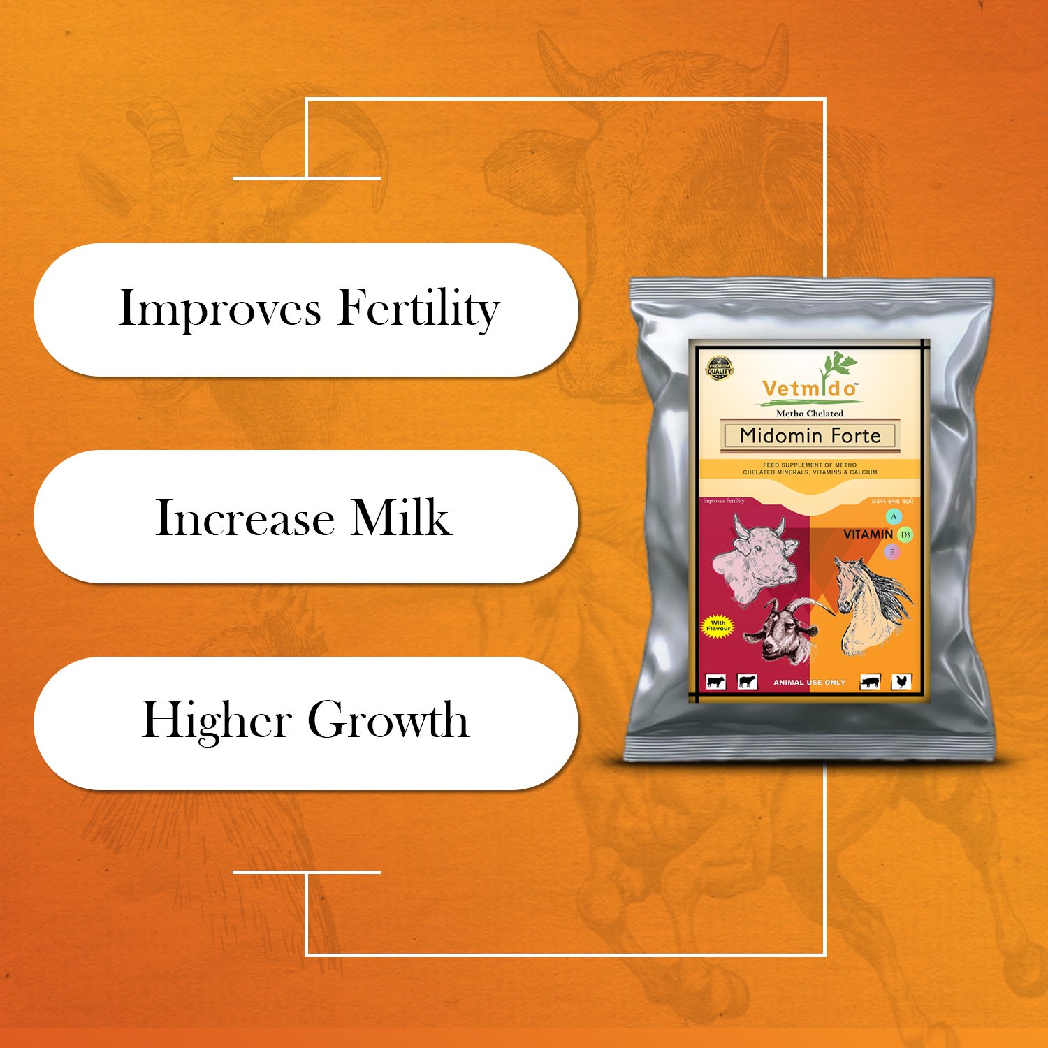 Methoxy Chelated Midomin Forte Powder is a Premium Quality Mineral Mixture for Cattle, Cow, Buffalo, Goat,